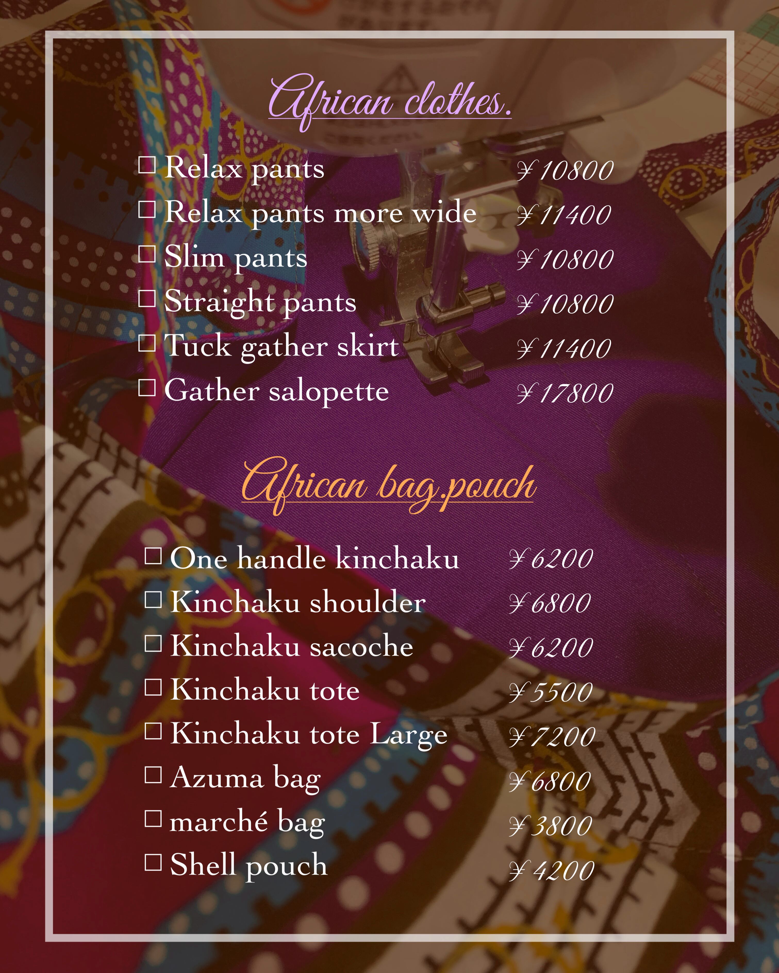 【受注製作】African slim pants 他パンツ/スカート可