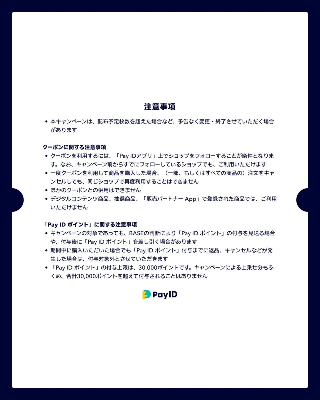 ↪︎利用期限前に終了となる場合は「Pay ID」の公式 Xアカウント と公式Instagram でアナウンスされますので、ご確認ください。