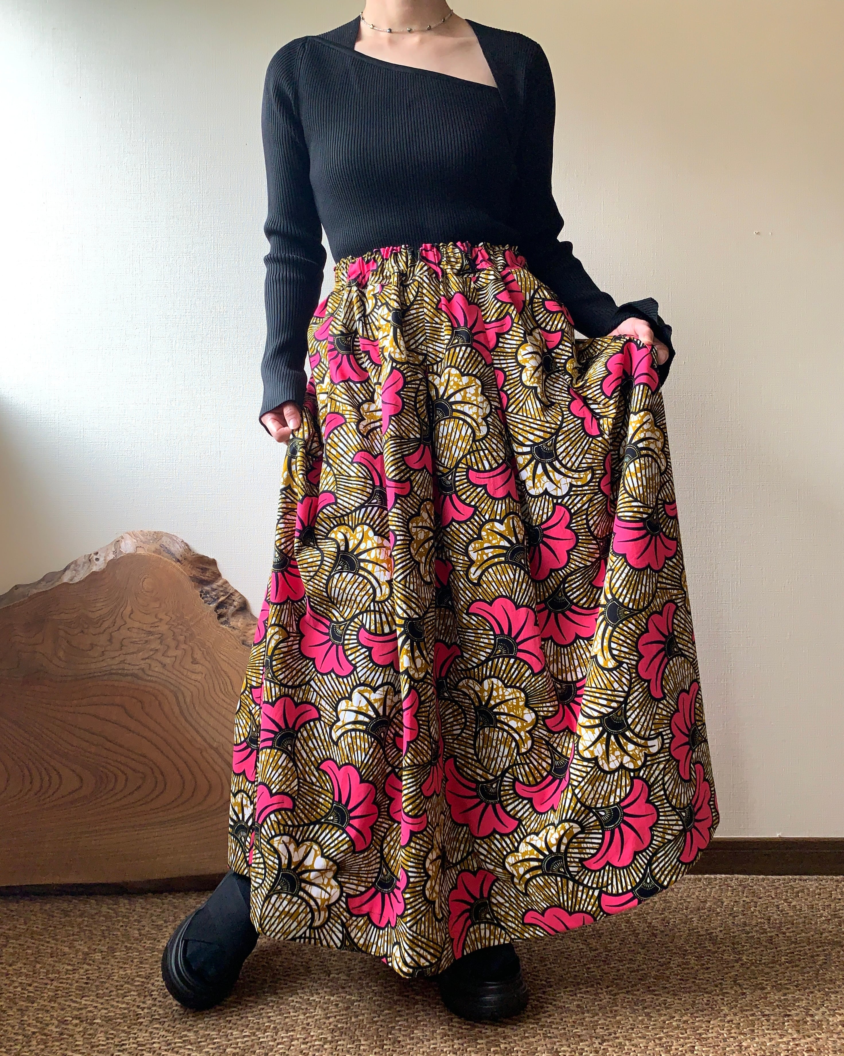 【即納商品】tuck gather skirt アフリカンスカート アフリカ布 アフリカンファブリック アフリカンプリント