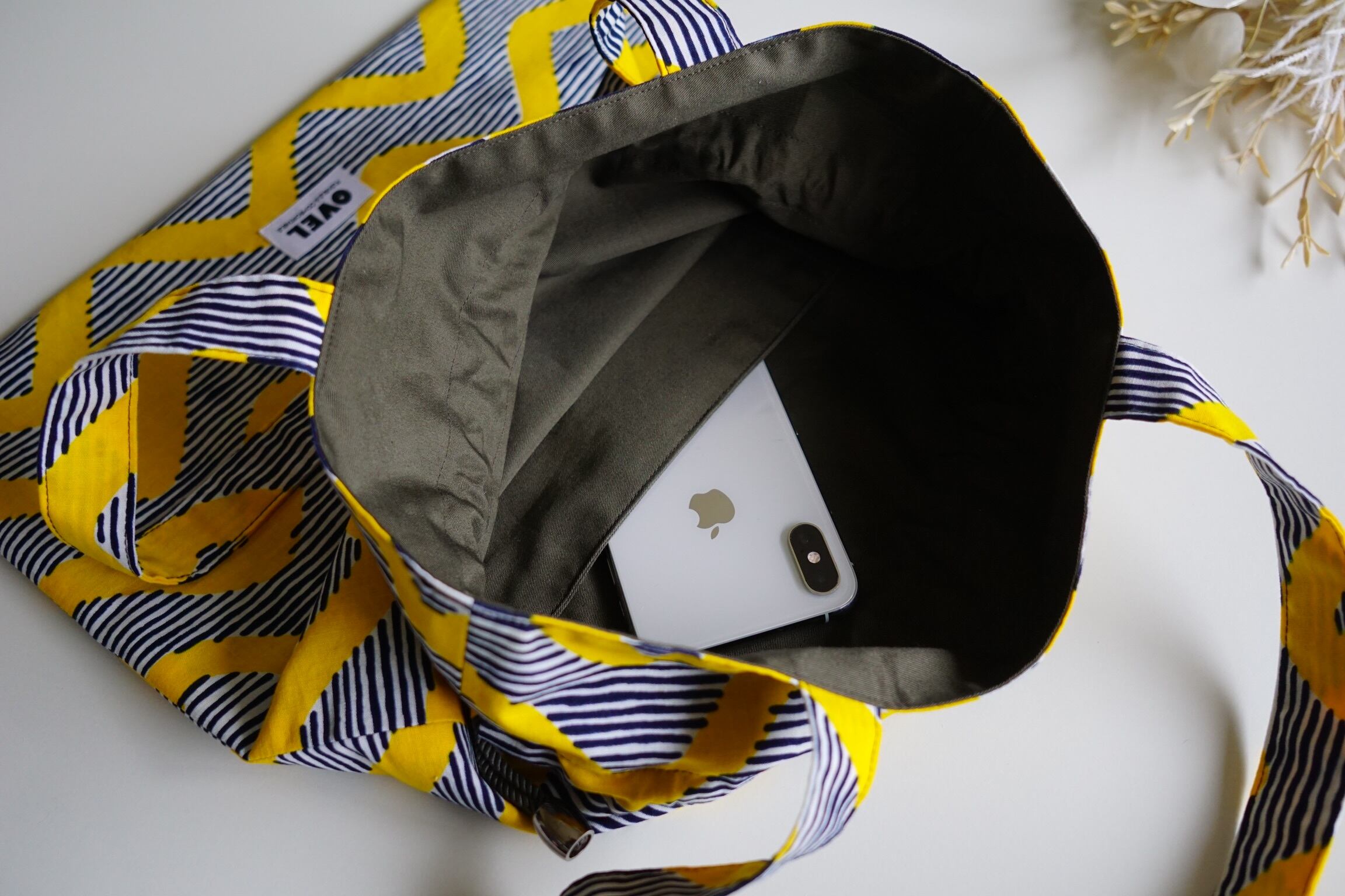 【受】kinchaku tote ≪yell wave≫ アフリカ布 巾着バッグ アフリカンファブリック アフリカンプリント