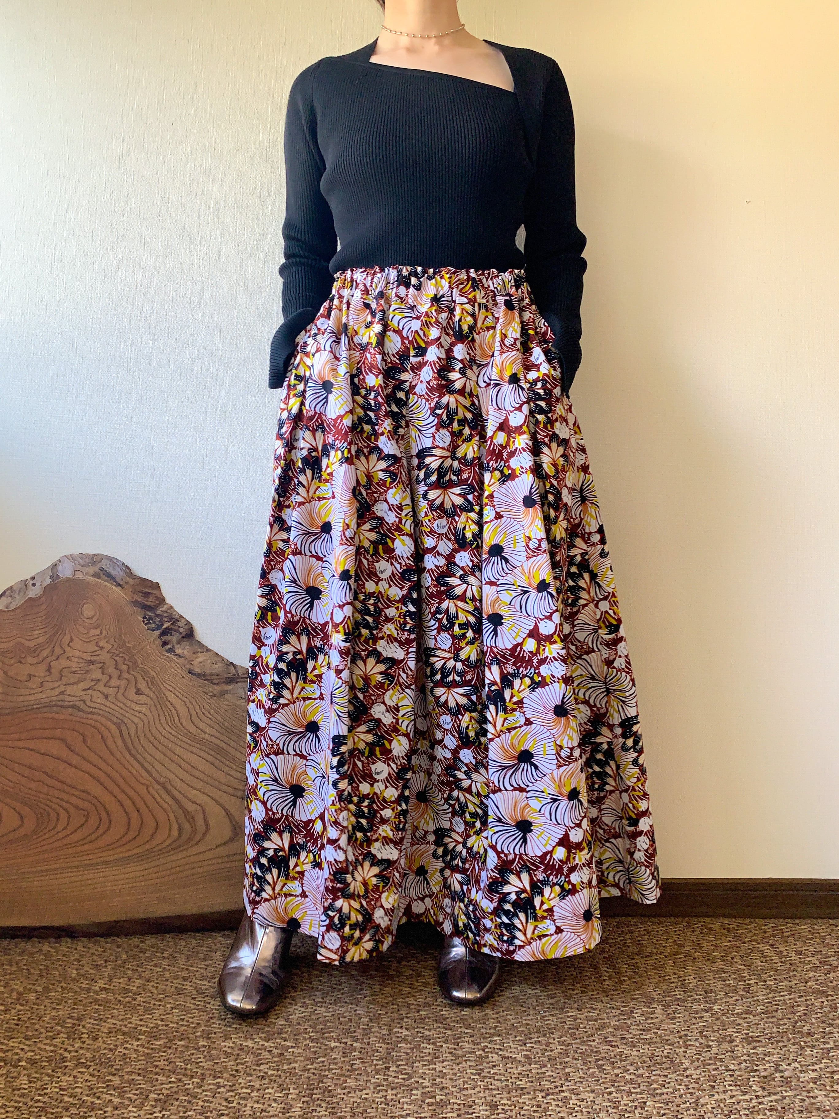 【即納】African tuck gather skirt アフリカンスカート アフリカ布 アフリカンファブリック アフリカンプリント